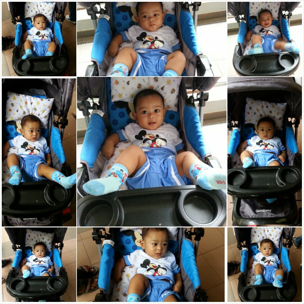 Bila kita letak atas kereta bayi ni, bukan boleh dok diam. Kaki tu yang cergasnya, hai mungkin abi dia aktif main futsal masa muiz dalam perut kot?