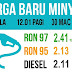 Harga baru diesel pula ialah RM2.11 berbanding RM2.20 seliter sebelum ini dan diesel Euro 5 pula pada harga RM2.21 seliter berbanding RM2.30 seliter sebelum ini.